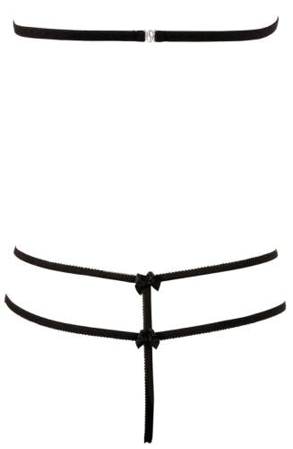 Beautiful set with removable cups bra, the thong has 2 straps that draw the hips and is open at the crotch. Perfect for that special day.